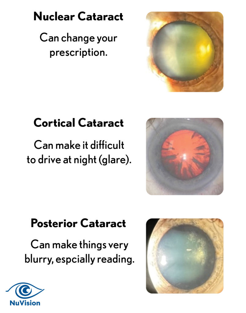 As we age, the clear lens we’re born with starts to become cloudy. Certain diseases can make this process happen faster, like diabetes. A cloudy lens is called a cataract. Like the Cataract Hotel in Niagra Falls or the Old Cataract Hotel in Egypt, cataract also means “waterfall.” Unlike smooth water, water moving over a waterfall is white and difficult to see through, just like a cataract. There are different types of cataracts but they are all treated essentially the same.